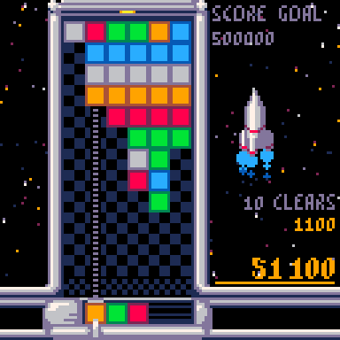 Initially, clearing one row of blocks awards 100 points. Clearing a row while there are blocks below that row permanently adds 10 points to the amount of points earned per clear.